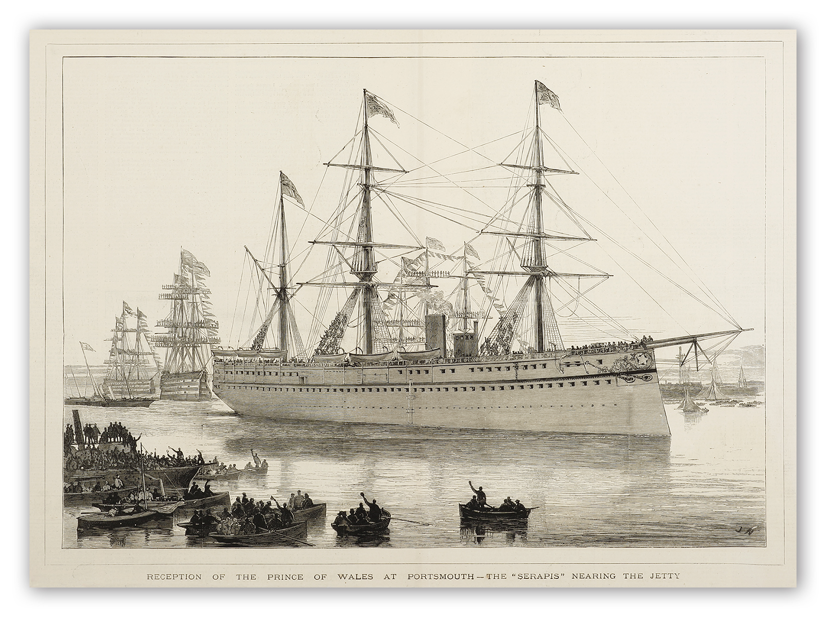 Reception of the Prince of Wales at Portsmouth – The “Serapis” Nearing the Jetty.