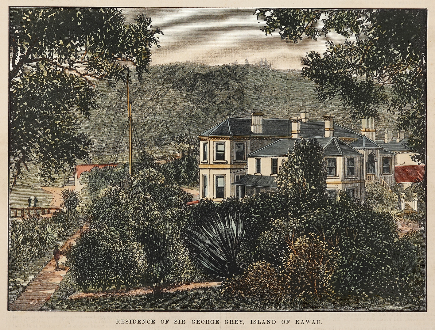 Grey purchased Kawau Island in 1862 during his second term as Governor. Grey had a keen interest in the natural sciences and in horticulture, and was an enthusiastic collector of plants and animals from around the world. Between 1862 and 1888 he spent a fortune developing Kawau as his island home, planting hundreds of different plant species and introducing many exotic and native animals including wallabies, kookaburras, weka, peacocks, zebras and monkeys. Sir George Grey enlarged and remodelled the former residence of the mine superintendent, which was built between 1845 and 1847 as his Kawau home. Sir Frederick Thatcher (architect, cleric, and Grey’s private secretary) was responsible for the design. Known today as Mansion House, it has been in public ownership since 1967 and was extensively restored to its former appearance in 1977-80 after many years of neglect. It has been furnished with a valuable collection of antique furnishings largely donated or loaned to DOC, and is open to the public.