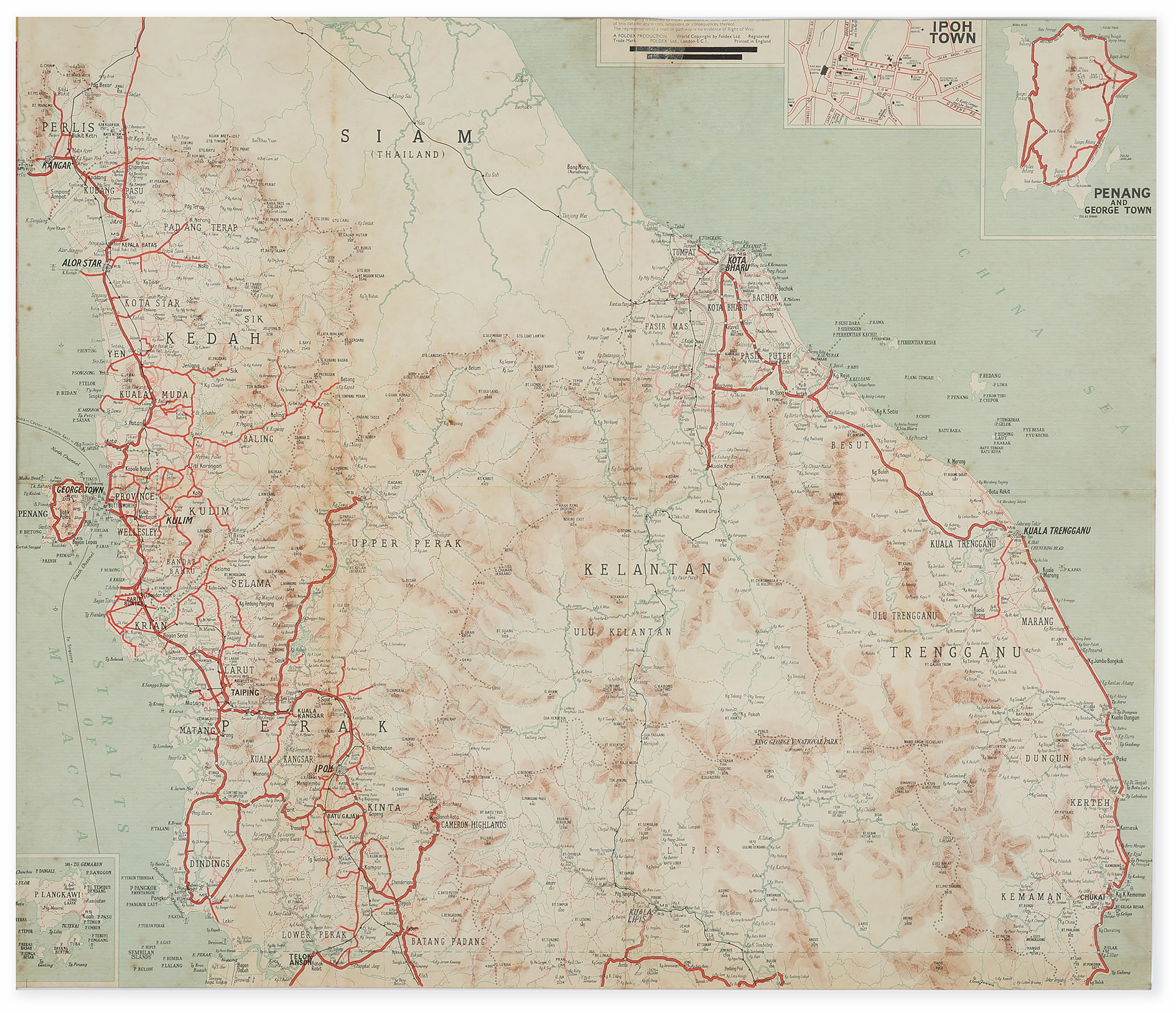 Scarce mid c.20th colour printed road of Malaysia and Singapore.