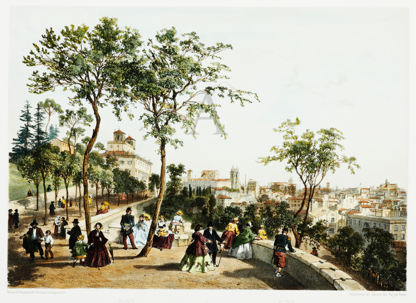 Roma, Veduta presa dal passeggio del Pincio, presso la Villa Medici. - Antique View from 1870