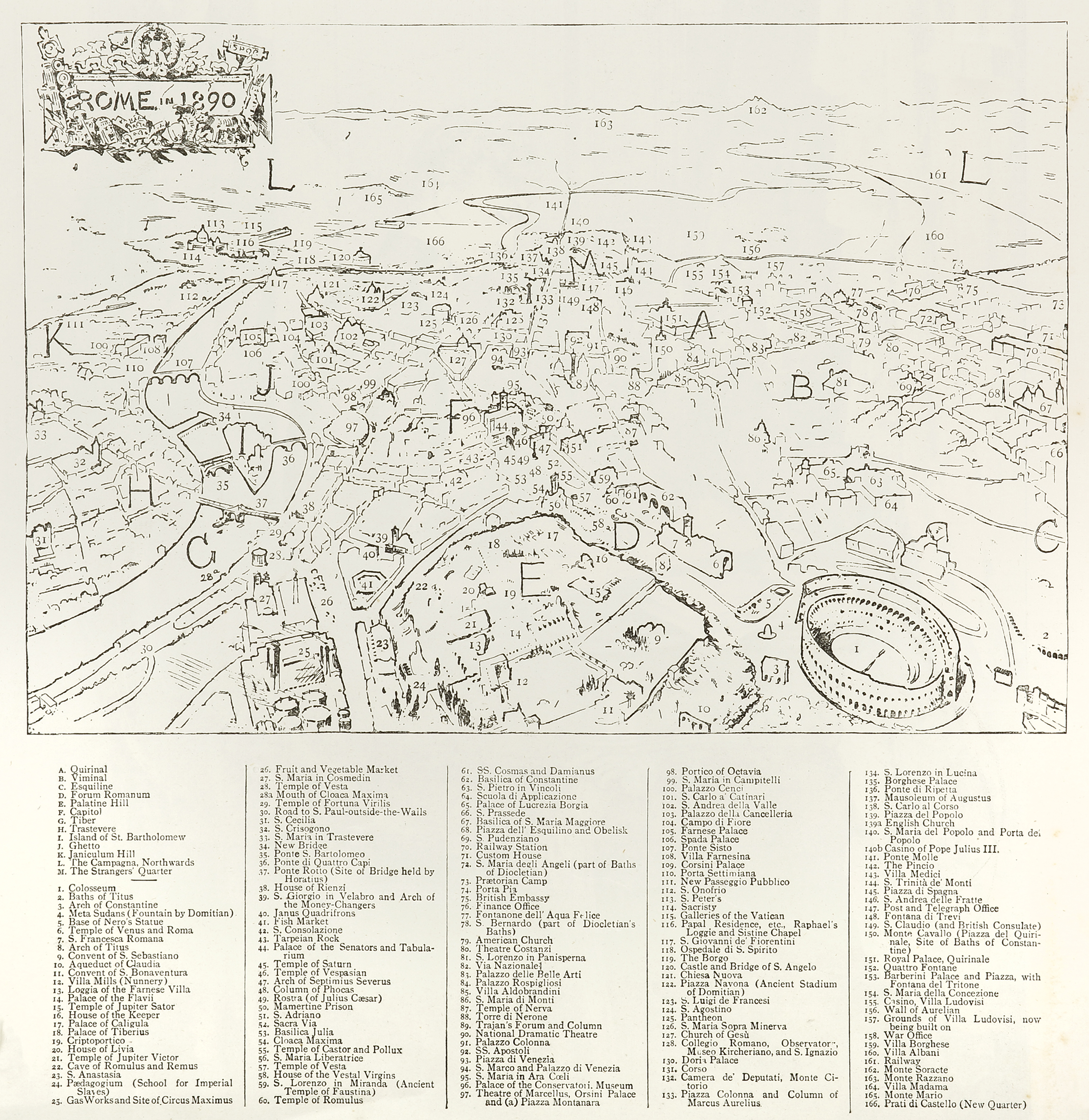 Spectacular panorama of the Eternal City taken from a balloon directly above the Forum. The Colosseum is at right while St. Peters is at the top left of the image. Sold with the very rare key. From the original edition … Read Full Description