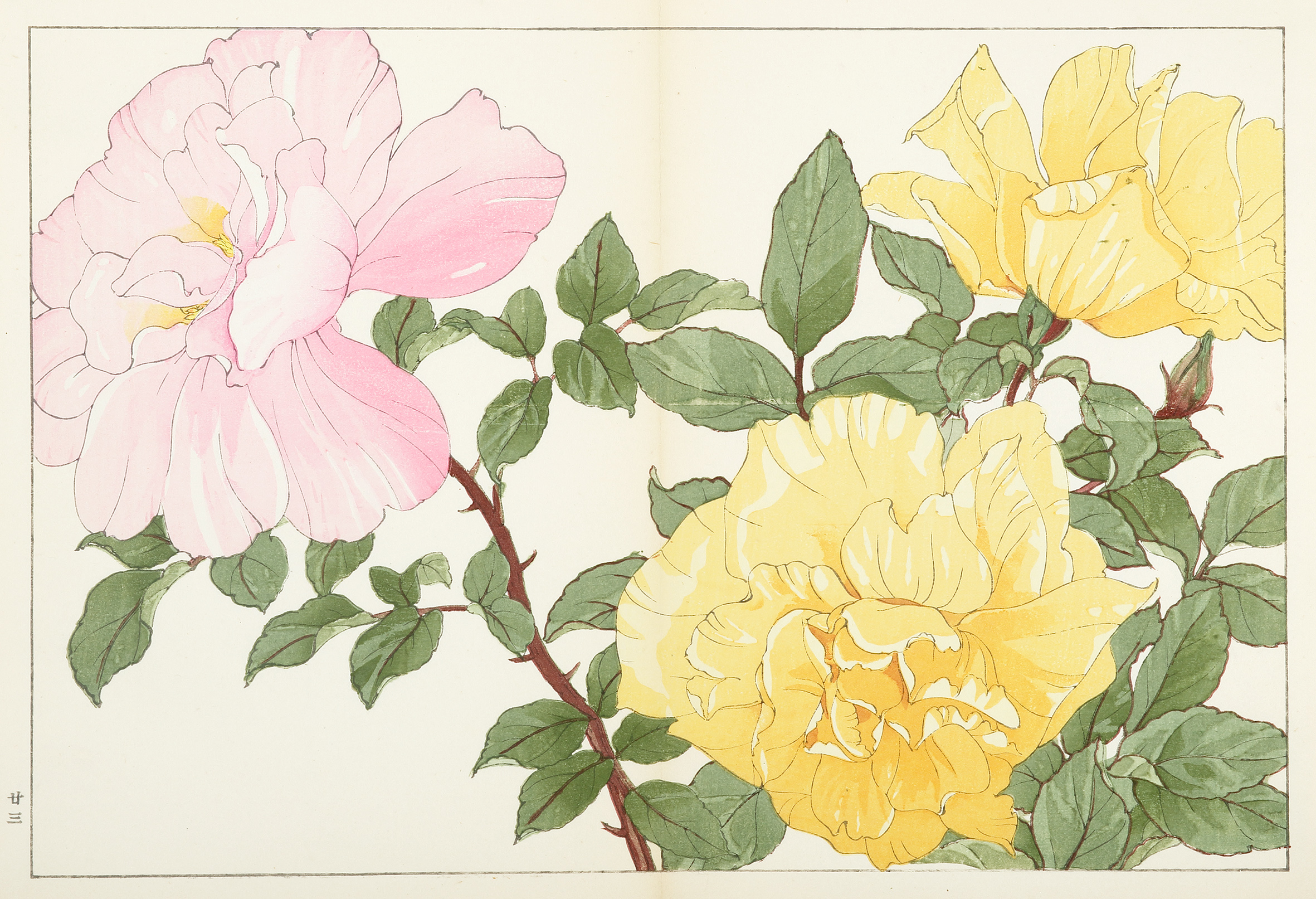 Woodblock of Roses by Tanigami Konan from the series, Seiyo Soka Zofu, or a Pictorial Book of Western Flowers.