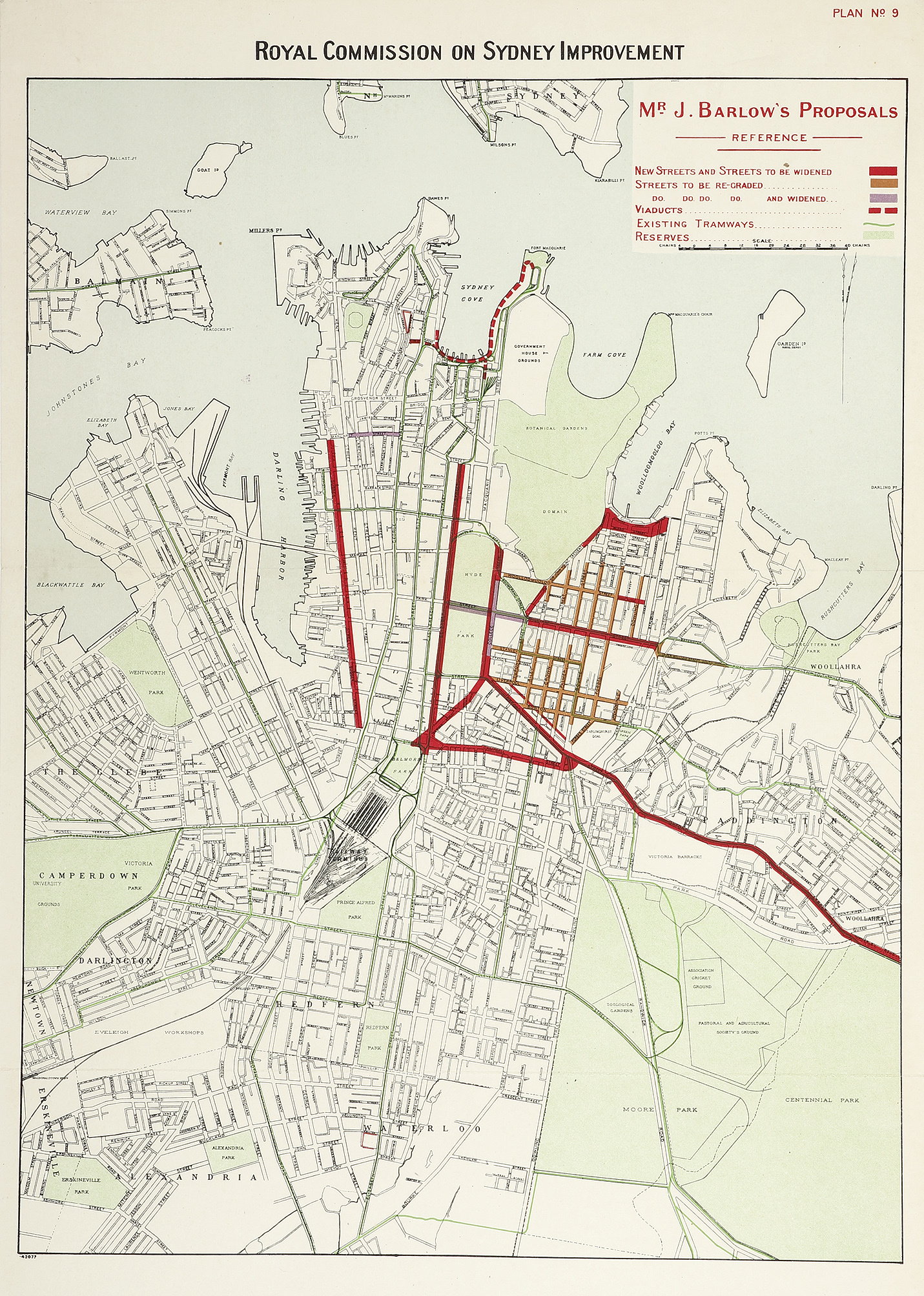 Rare plan by showing Mr. J. Barlow’s proposals made for the Royal Commission on Sydney Improvements.