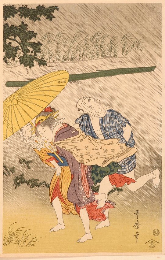 The kiminoa with elaborate embossing. Utamaro Kitagawa 1750-1806 Utamaro Kitagawa is highly appreciated as the dominating ukiyo-e artist of the late eighteenth century. Yet little is known about his life. Neither the precise date of Utamaro’s birth or his birthplace. … Read Full Description