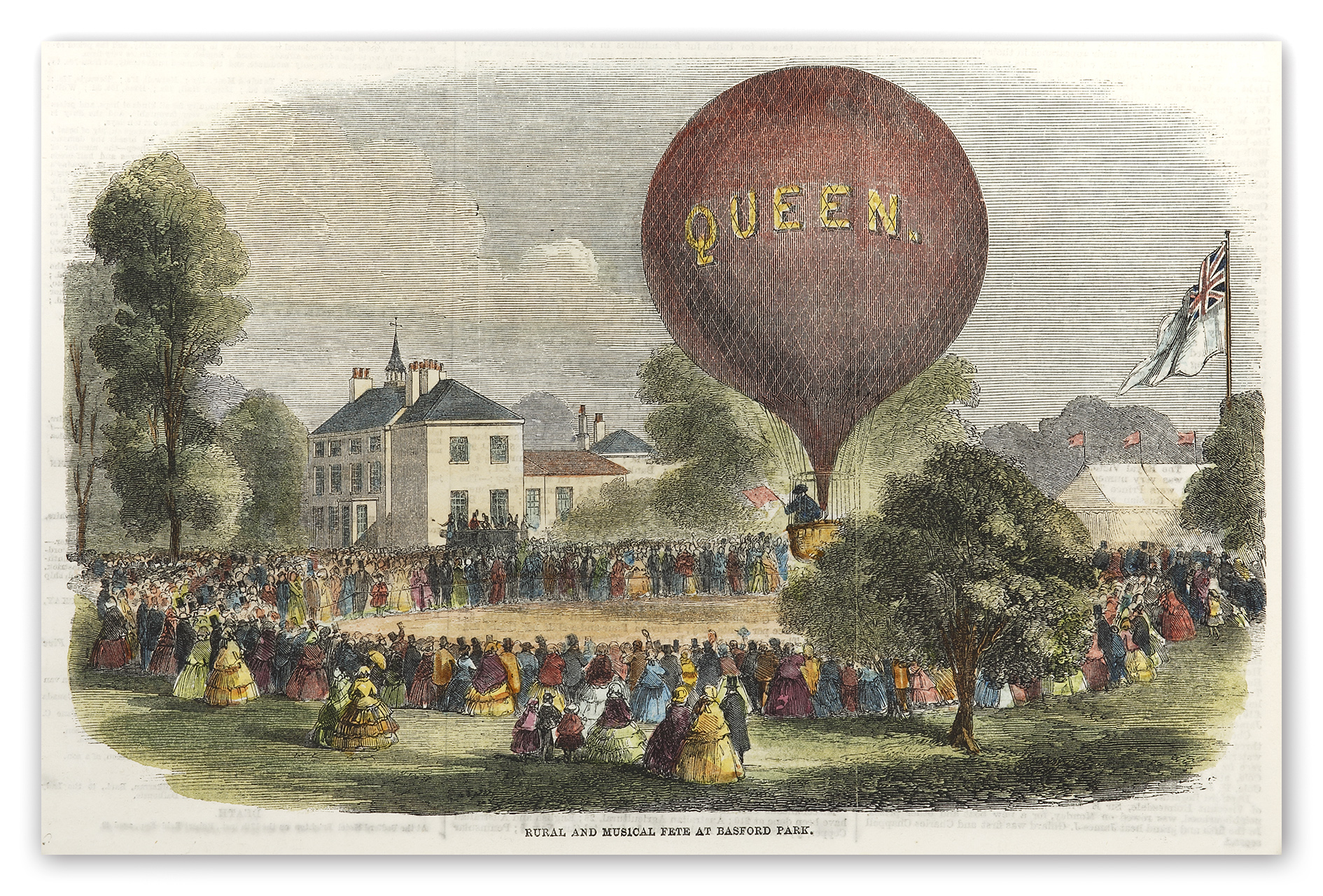 Early C19th ballooning engraving. From the original edition of the Illustrated London News.