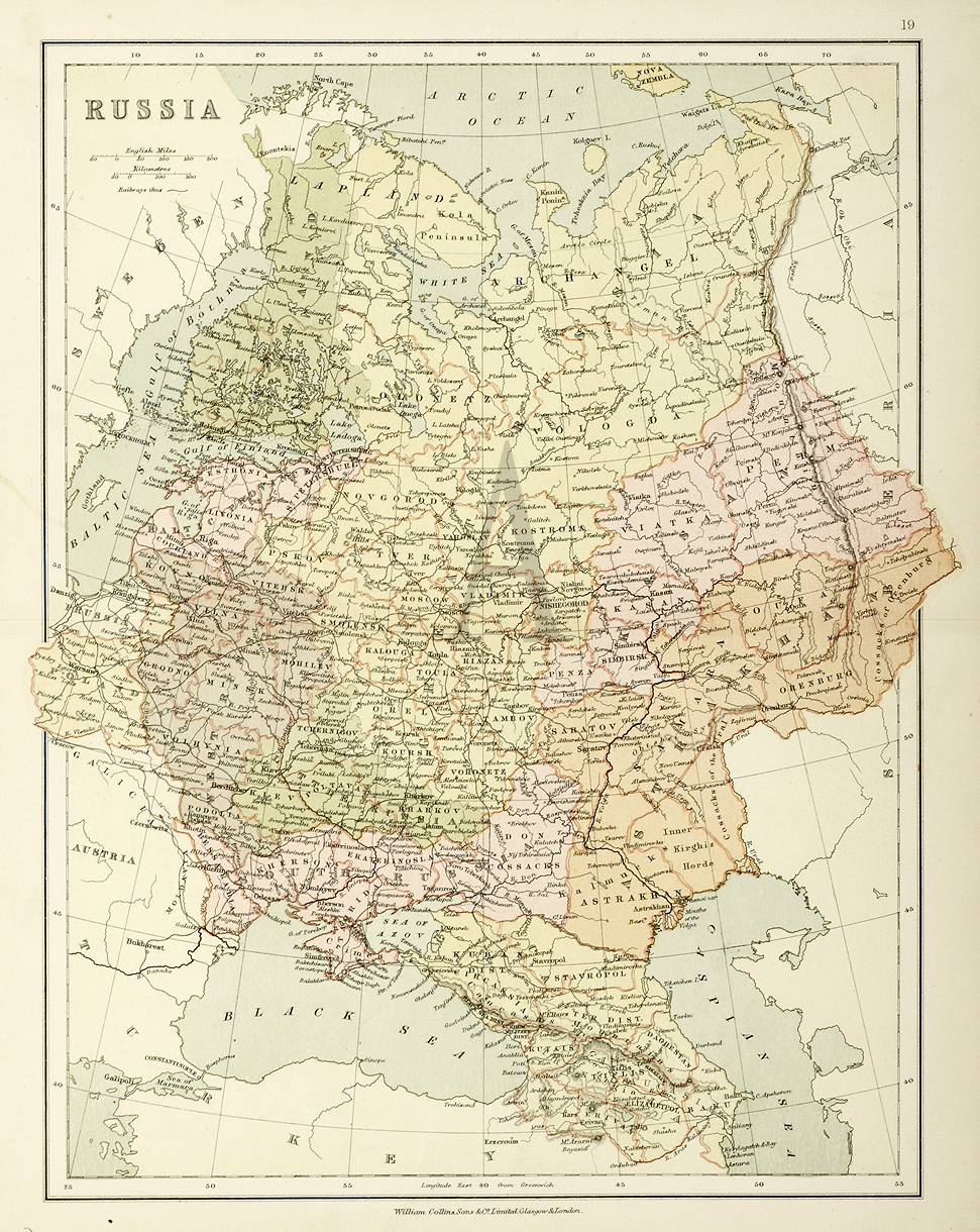 Large detailed C19th map of Russia.