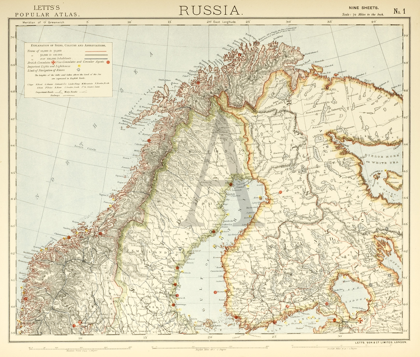 Detailed map of Scandinavia, from Lett’s Popular Atlas published
