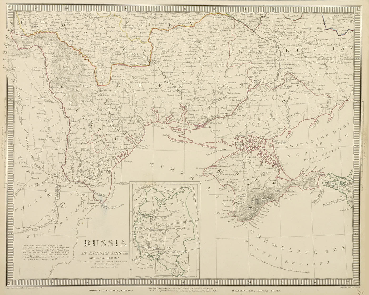 Very detailed map of Russia published by the Society for the Diffusion of Useful Knowledge.