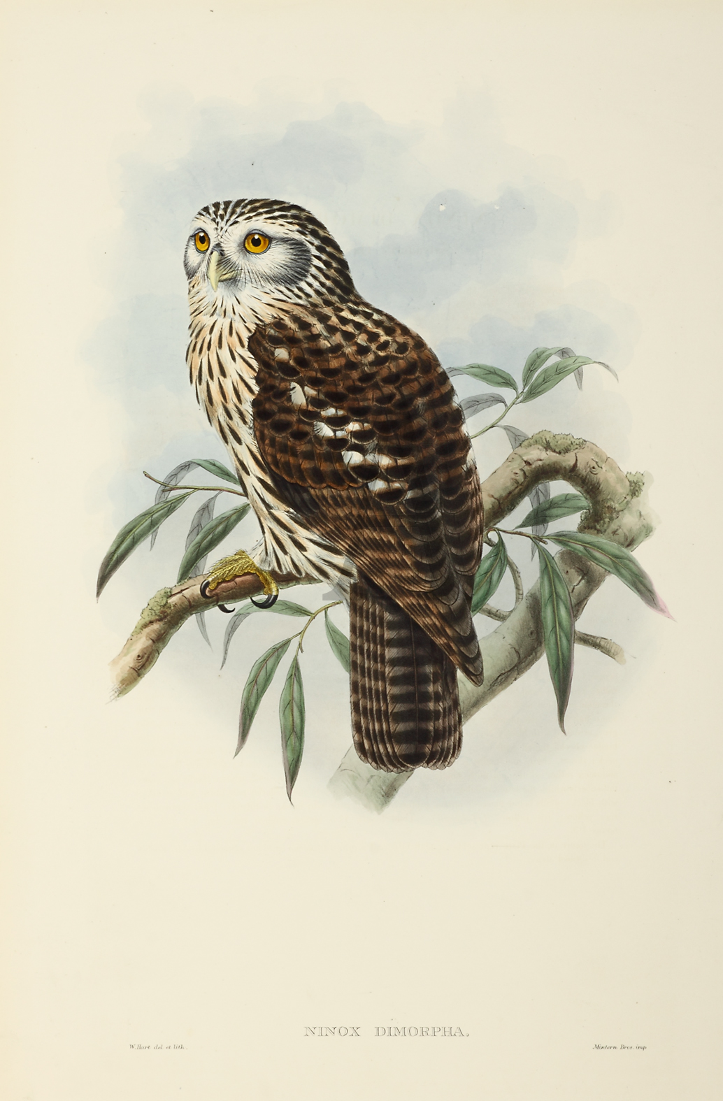 Salvadori's Hawk-owl - Ninox Dimorpha - Antique Print from 1875