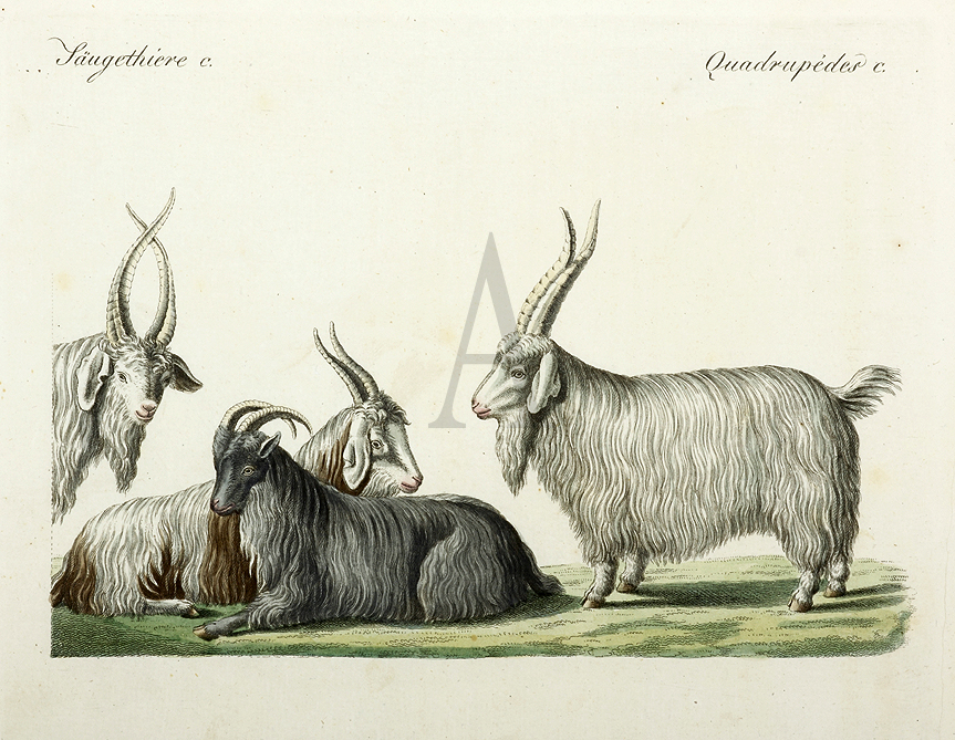 A superb early engraved print of Angora goats.
