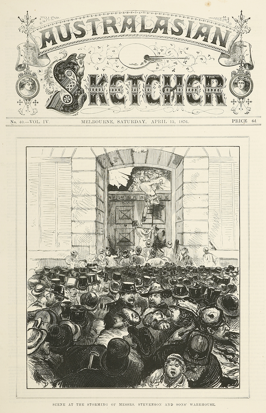 Scarce colonial engraving of Stevensons and Sons warehouse, Flinders Lane, Melbourne who were accused of falsifying import invoices by Australian Customs. From the original edition of The Australasian Sketcher. Collections: State Library Victoria: Accession no: A/S 15/04/76/1 THE CASE OF … Read Full Description