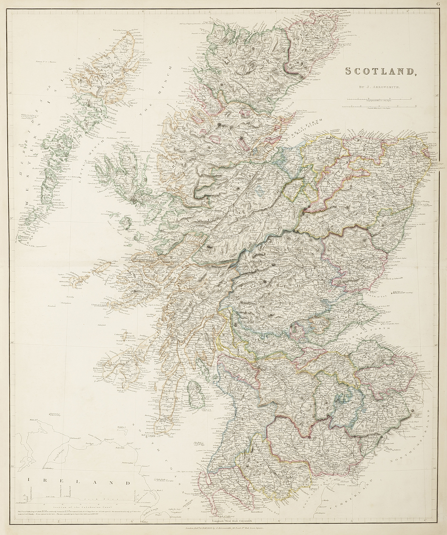 First edition dated 15th Feb. 1834, of Arrowsmith’s detailed map of Scotland.