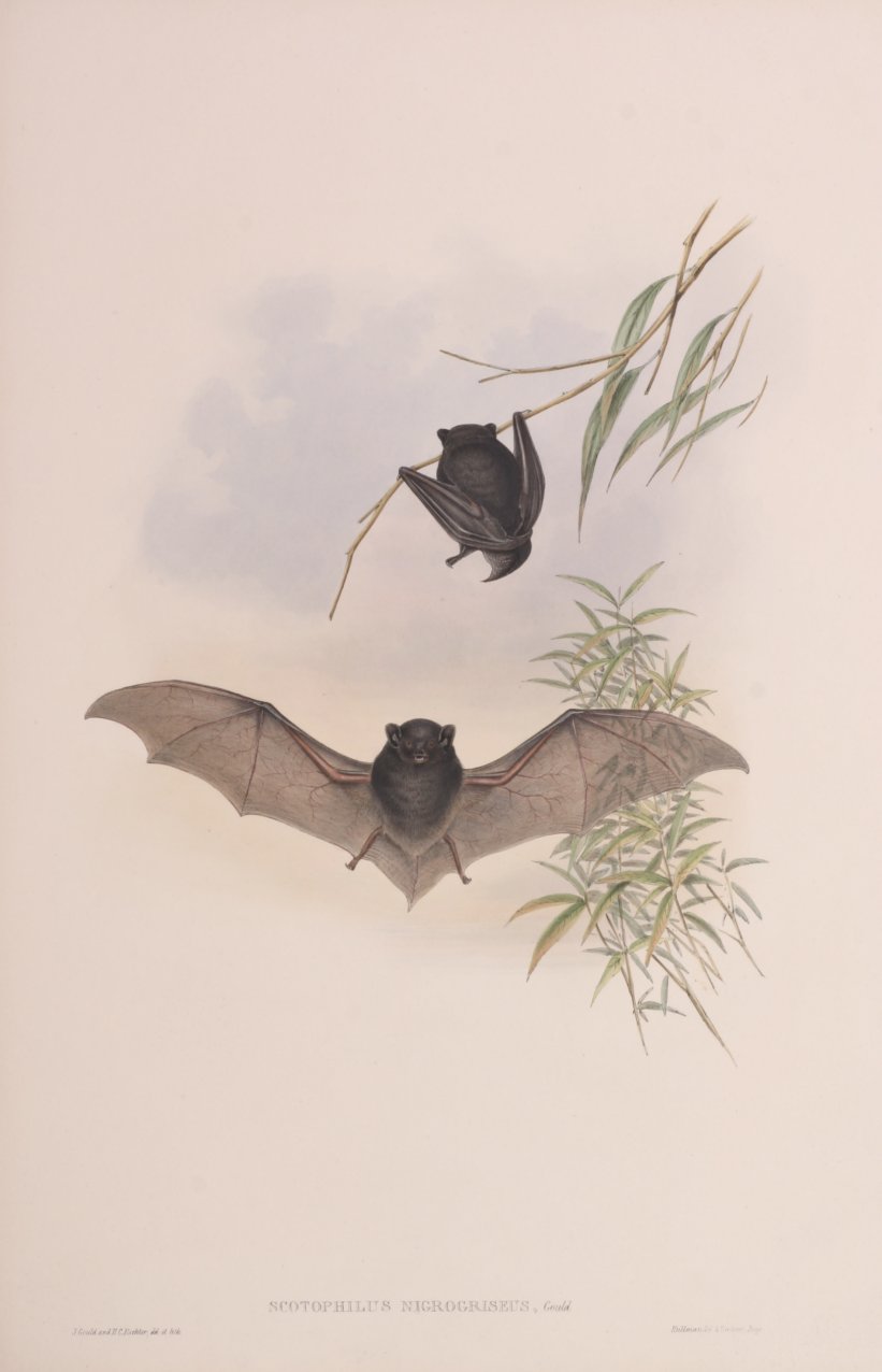 Gould common name Blackish-grey Scotophilus Modern scientific name Chalinolobus nigrogriseus (Gould, 1856). Distribution WA, NT, NSW & QLD. S MOA Pg 515