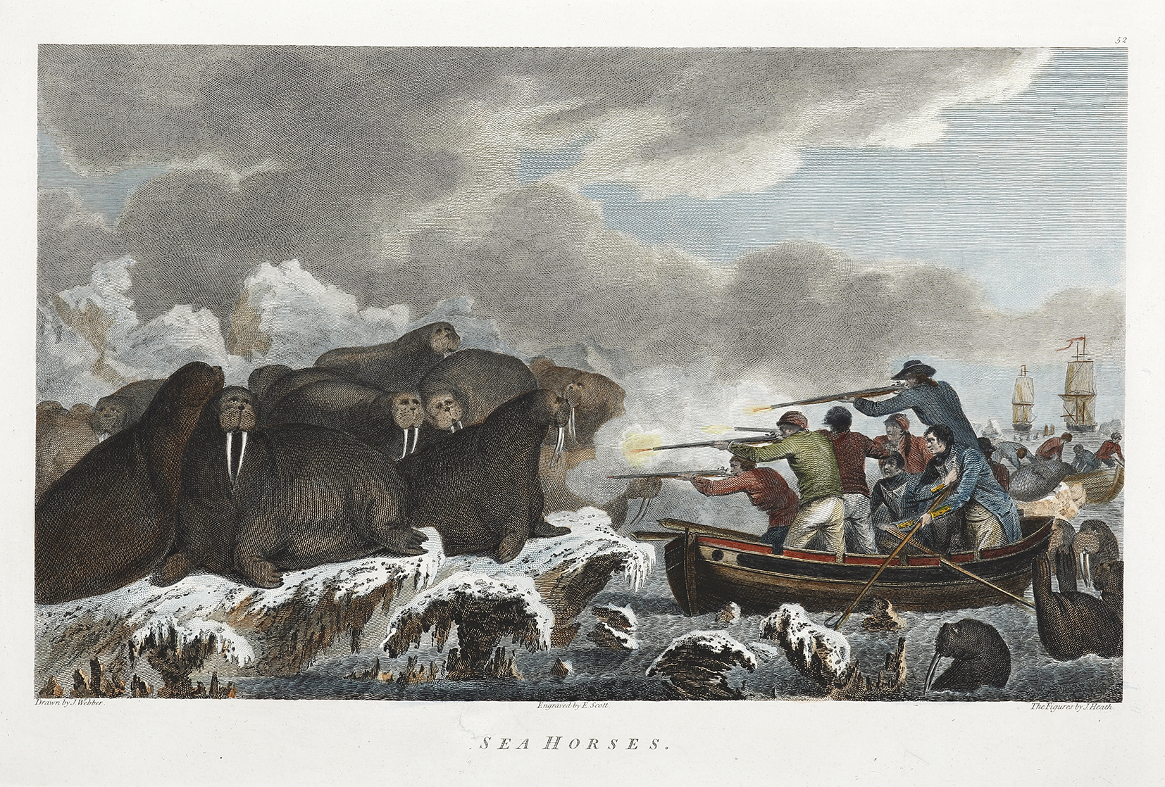 On the 19th August Cook sent two boats to hunt the large colony of walruses that had been seen from the ship. By seven that evening seven were brought on board the Resolution.