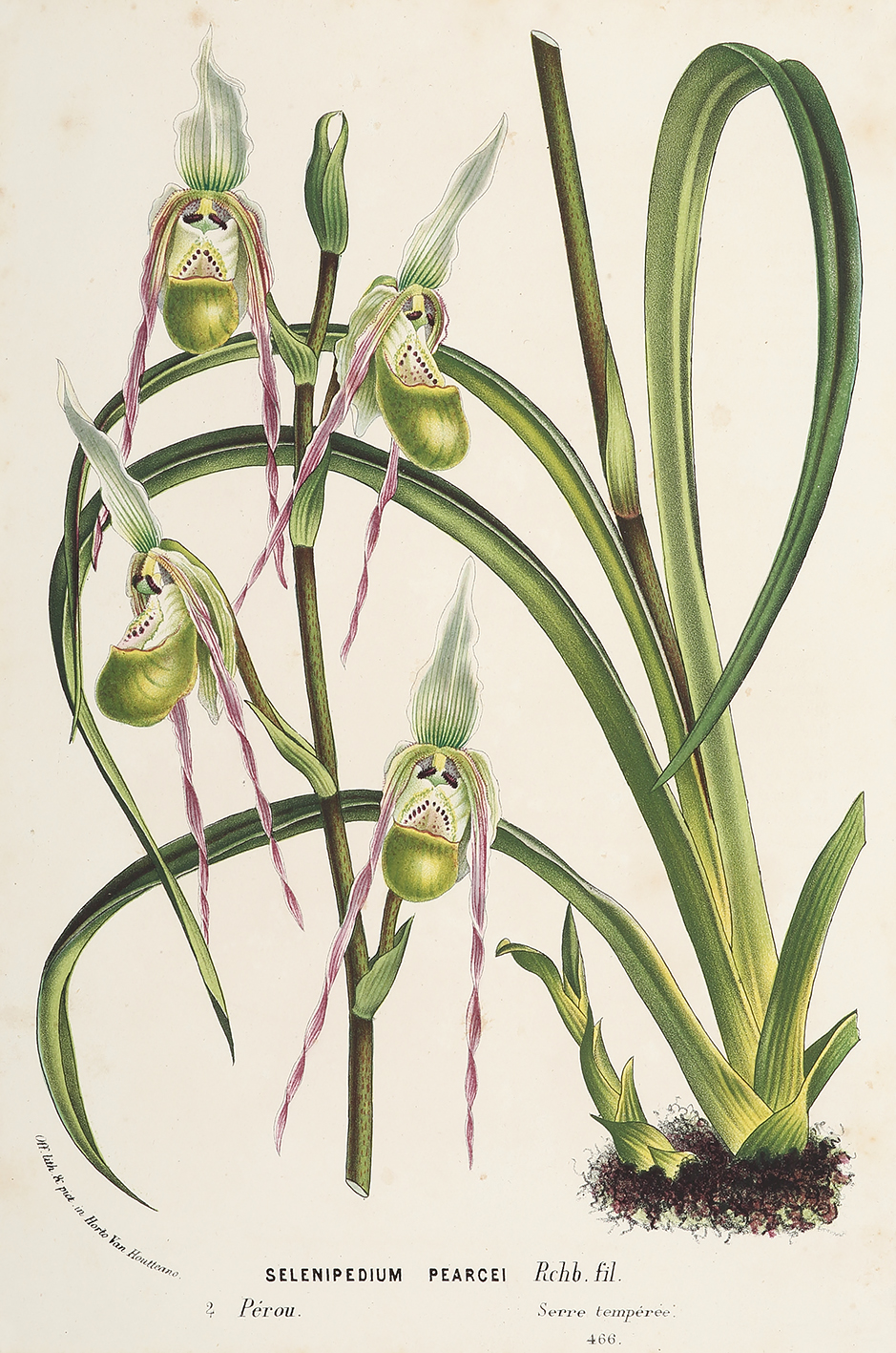 Scarce c.19th botanical colour lithograph of Pearce’s Phragmipedium.