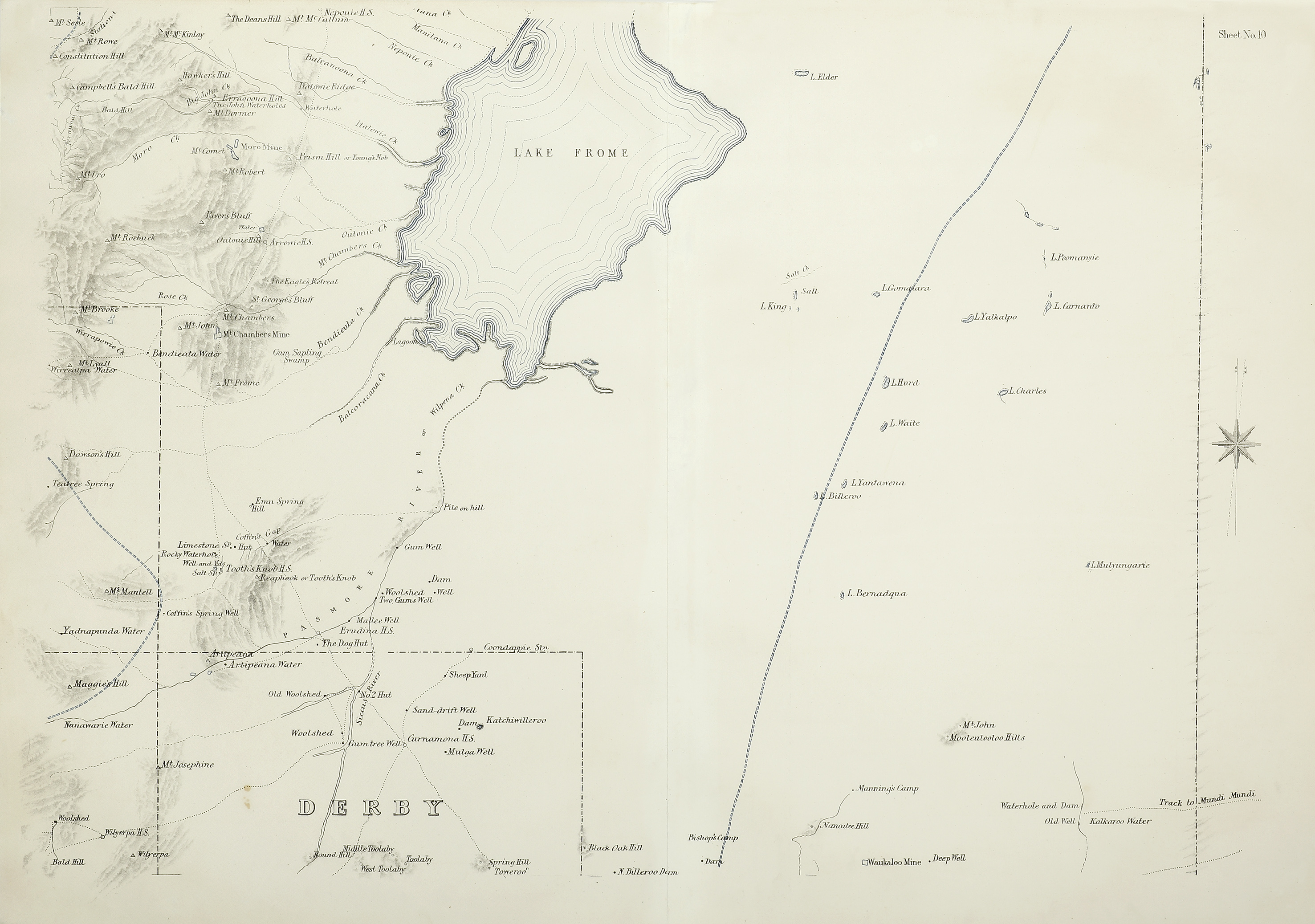 Rare and important detailed map of northern South Australia covering the country around Lake Frome by George Goyder (1826-1898), with the following detailed information: