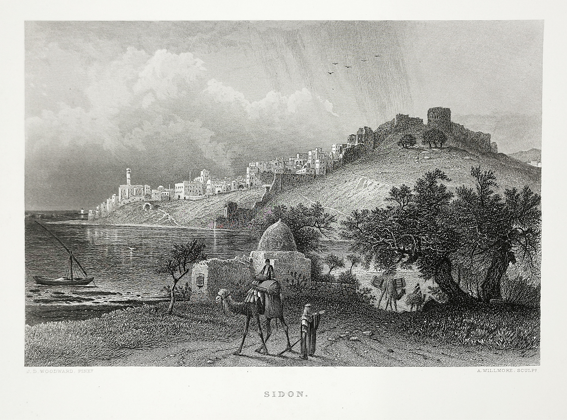 Fine engraving of Sidon, known as Sayda or Saida, the third-largest city in Lebanon.