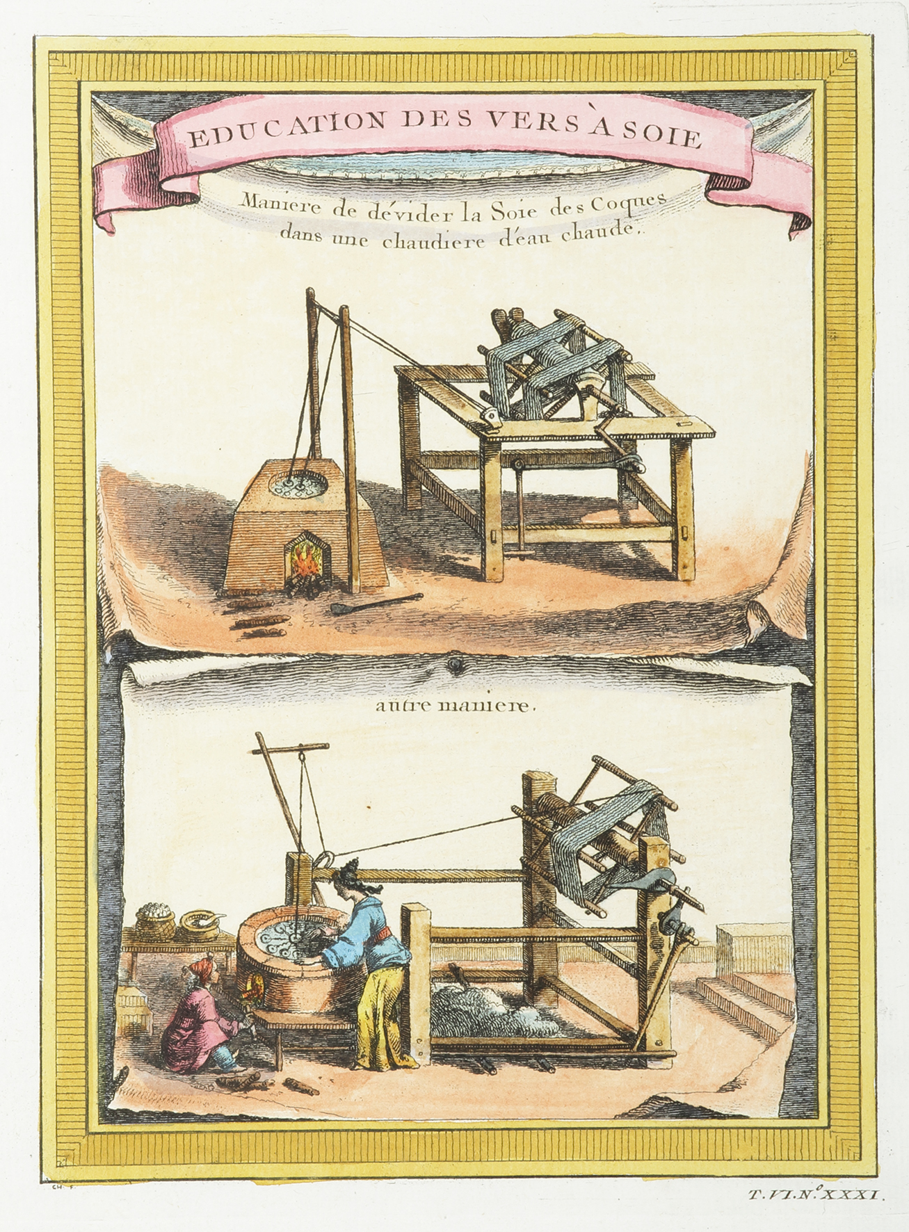 Plate 31: Education des Vers A Soie. Maniere de Devider la Soie des Coques dans une