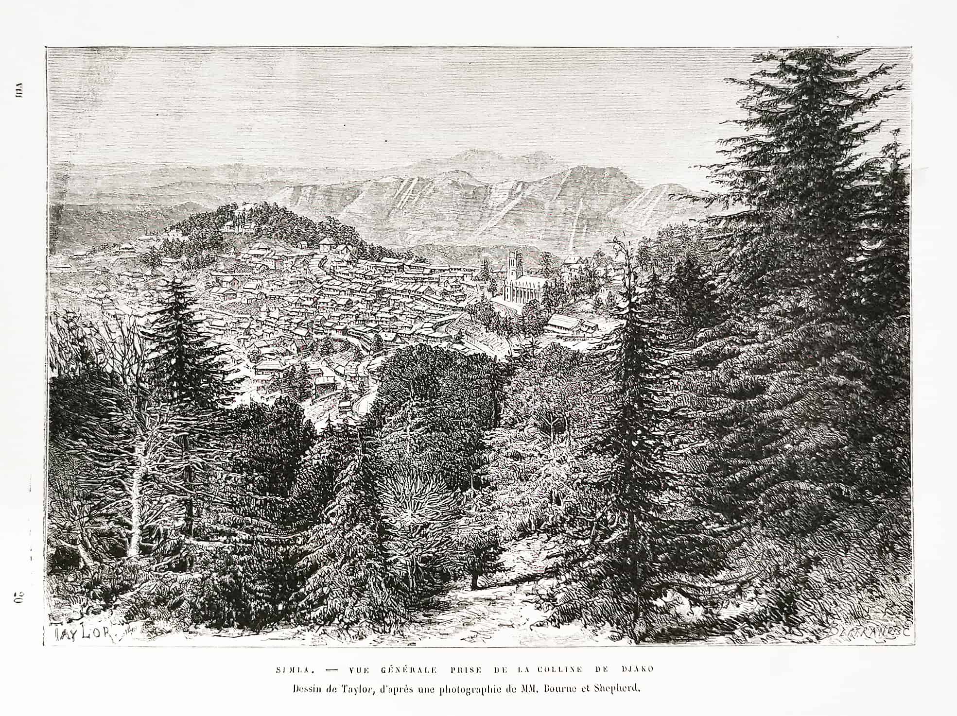 Engraving of Simla, general view from the hill of Djako. Drawing by Taylor, after a photograph by Messrs Bourne and Shepherd.