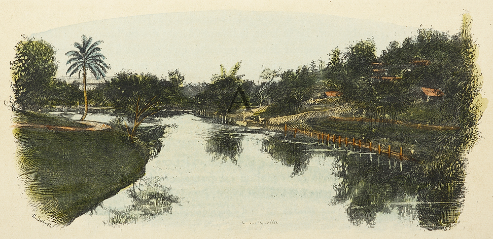 Scarce c.19th hand coloured French view of the Singapore Botanic Gardens in 1889. Collections: National Library Australia: Bib ID: 553775Bibliotheque Nationale de France: 12148/bpt6k5806964tRoyal Collection Trust UK: RCIN 1128519State Library New South Wales: ISSN 1747-3594