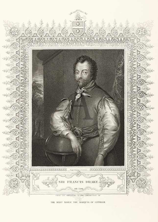 Portrait of Francis Drake Sir Francis Drake, vice admiral (C1540-1596) was an English sea captain, privateer, navigator, slaver, and politician of the Elizabethan era. He made the second circumnavigation of the world in a single expedition, from 1577 to 1580, … Read Full Description