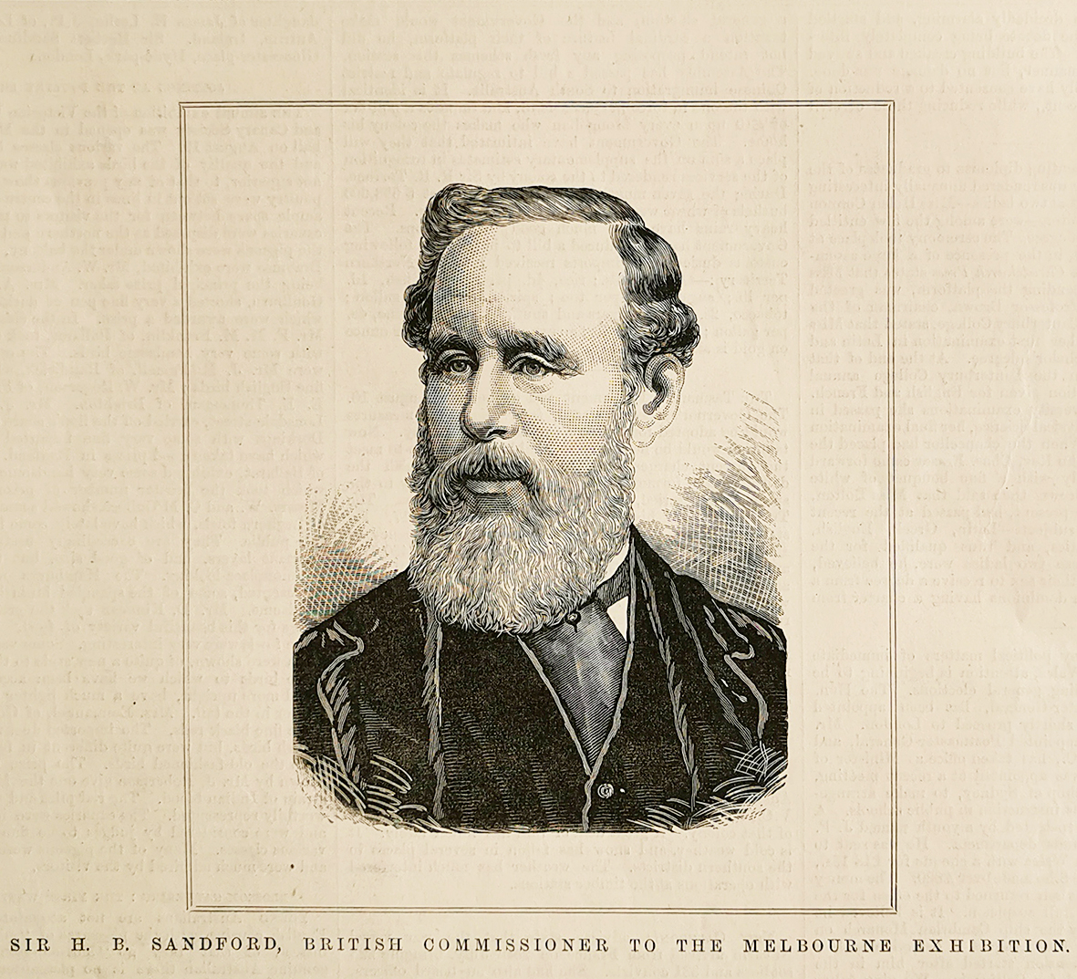 Engraved portrait of Herbert Sandford R.A. (1826–1892) British Commissioner. From the original edition of the Australasian Sketcher.