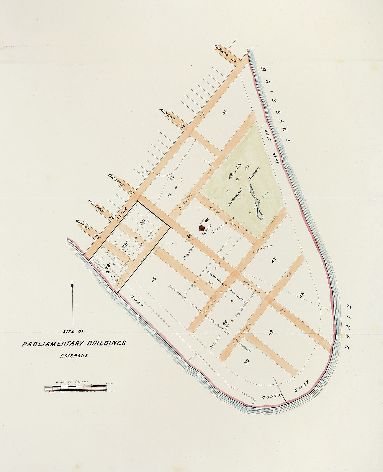 Rare plan of the Brisbane Parliamentary Buildings.