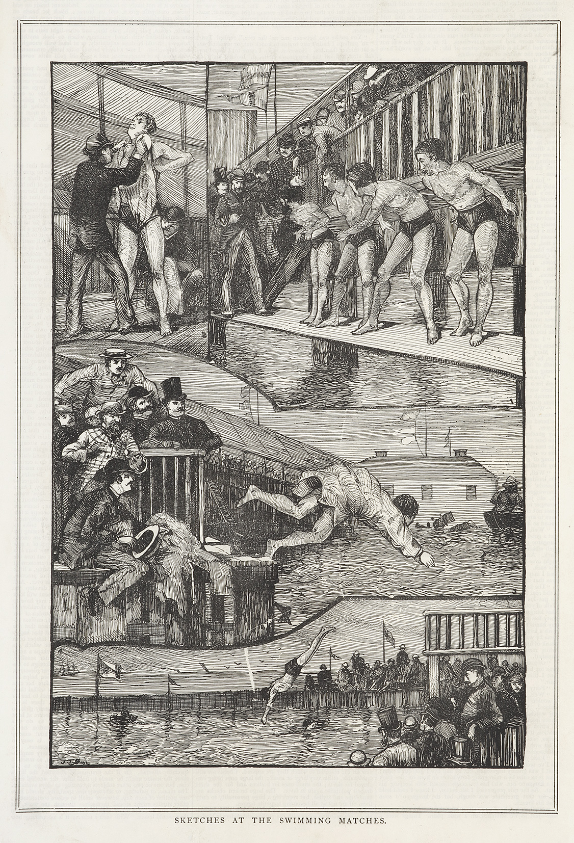 Very rare engraving of swimming baths, probably in Melbourne as the artist was resident there. From the original edition of The Australian Graphic. Incredibly, this newspaper used glass for all the engraving plates which the proprietors claimed, reduced the cost … Read Full Description