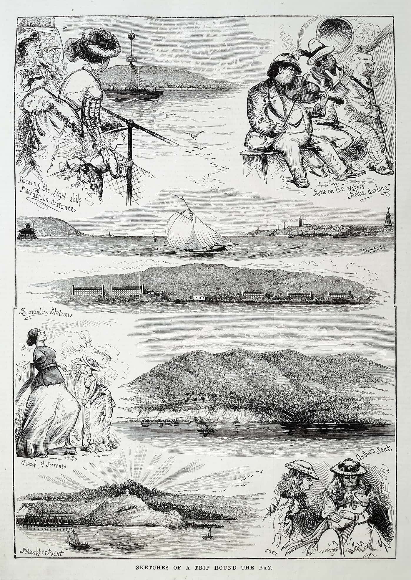 Colonial engraving of Port Phillip Bay. From the original edition of the Australasian Sketcher.