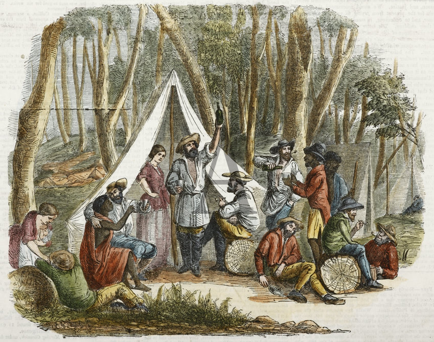 Rare c.19th engraving of the Hanging Rock diggings in 1854 which was a former gold mining town, situated about 10 km south east of Nundle, NSW.
