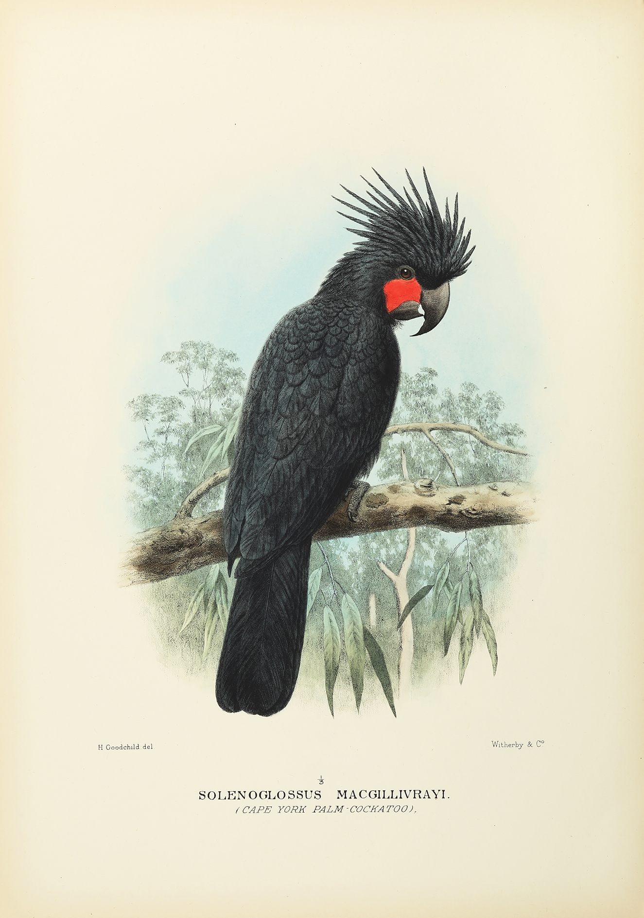 Superb lithograph with original hand colouring of the Palm Cockatoo from the last great series on Australian ornithology, The Birds of Australia by G. Matthew’s.