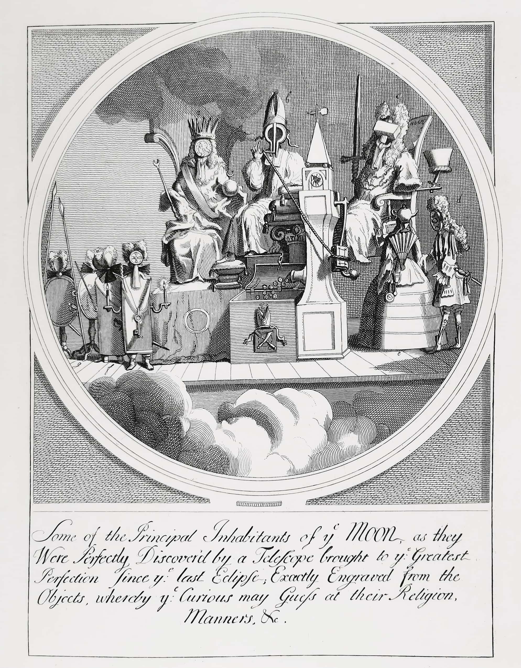 This is Hogarth’s daring attack upon the English ruling middle-class point of view. Playing on the wordly operations of these celestial figures, it depicts lings, bishops and lawyers as empty, mechanical forms having the power to manipulate but being composed only of the symbols with which they are decorated.