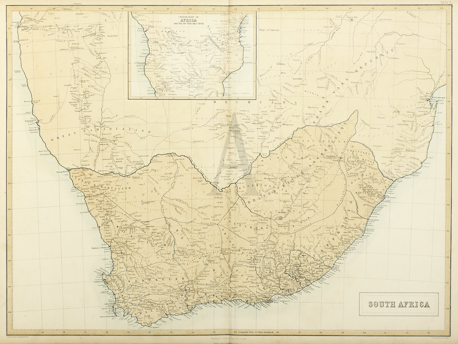 Excellent detailed map of South Africa with inset of central Africa.
