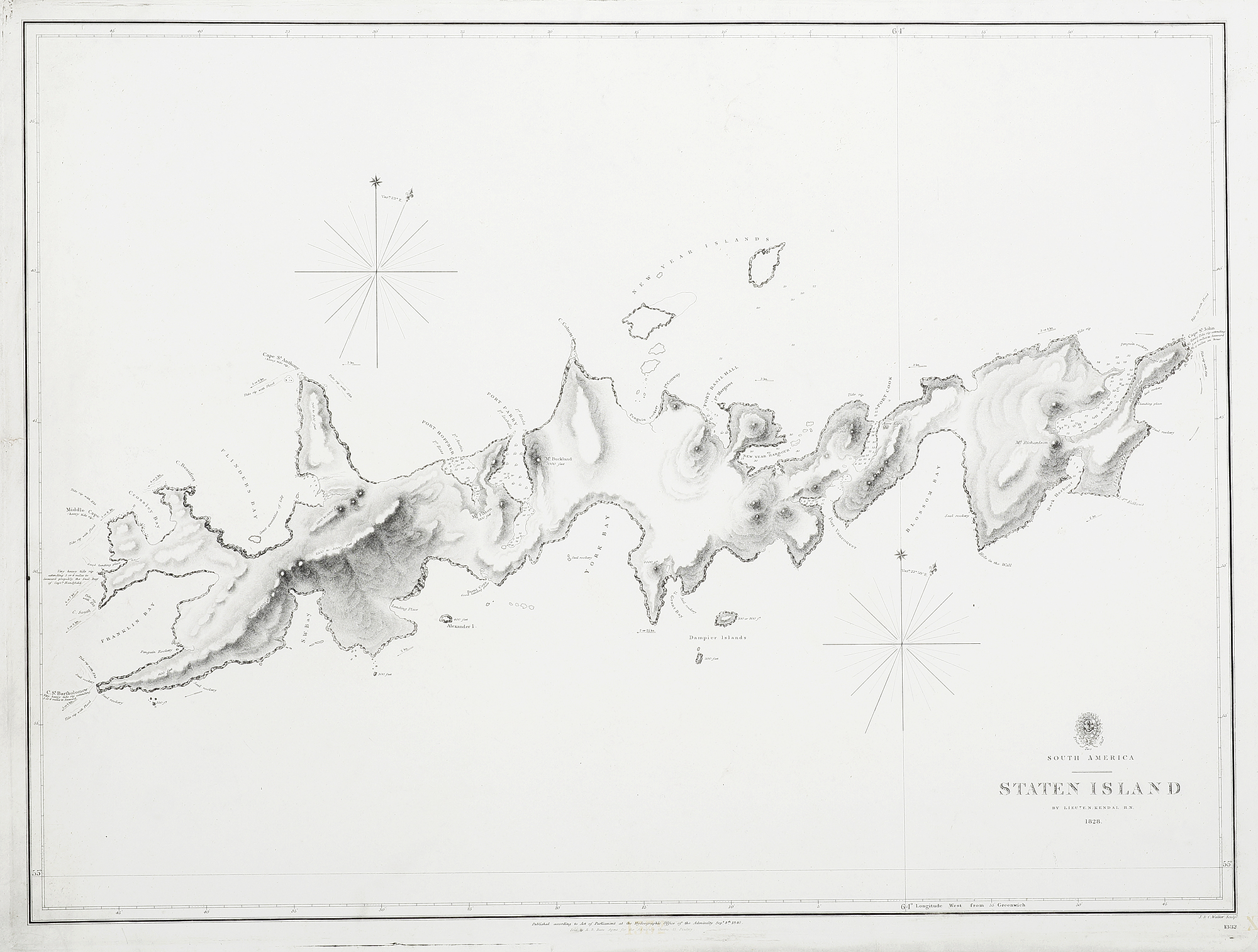 Very rare British Hydrographic Admiralty map of Staten Island, of present day Isla de los Estados, Argentina, dated on the map below the title, 1828, published 8th September, 1840.