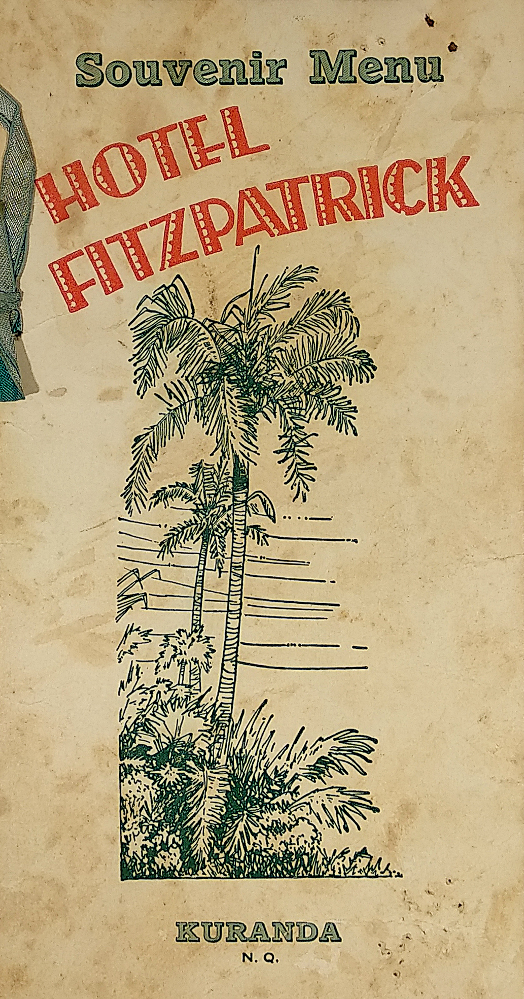 Scarce early C20th menu for the Hotel Fitzpatrick, Kuranda, Queensland. 2pp with inserted 2p. menu