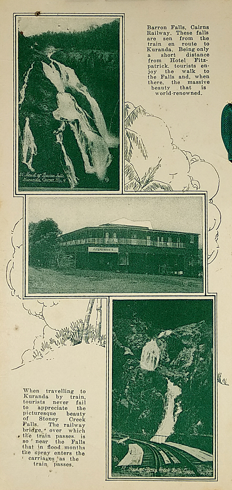 Kuranda, established in 1885, has been a tourist destination since the early 1900s. The completion of the Cairns to Kuranda railway line in 1891 made Kuranda more accessible to locals and tourists alike. Tourism to Far North Queensland was facilitated in the 1920s by the Adelaide Steamship Company’s coastal service, which operated in reaction to increased demand from the Australian domestic holiday market. By the 1930s tourism was flourishing in Kuranda and the destination was particularly popular with honeymoon couples.