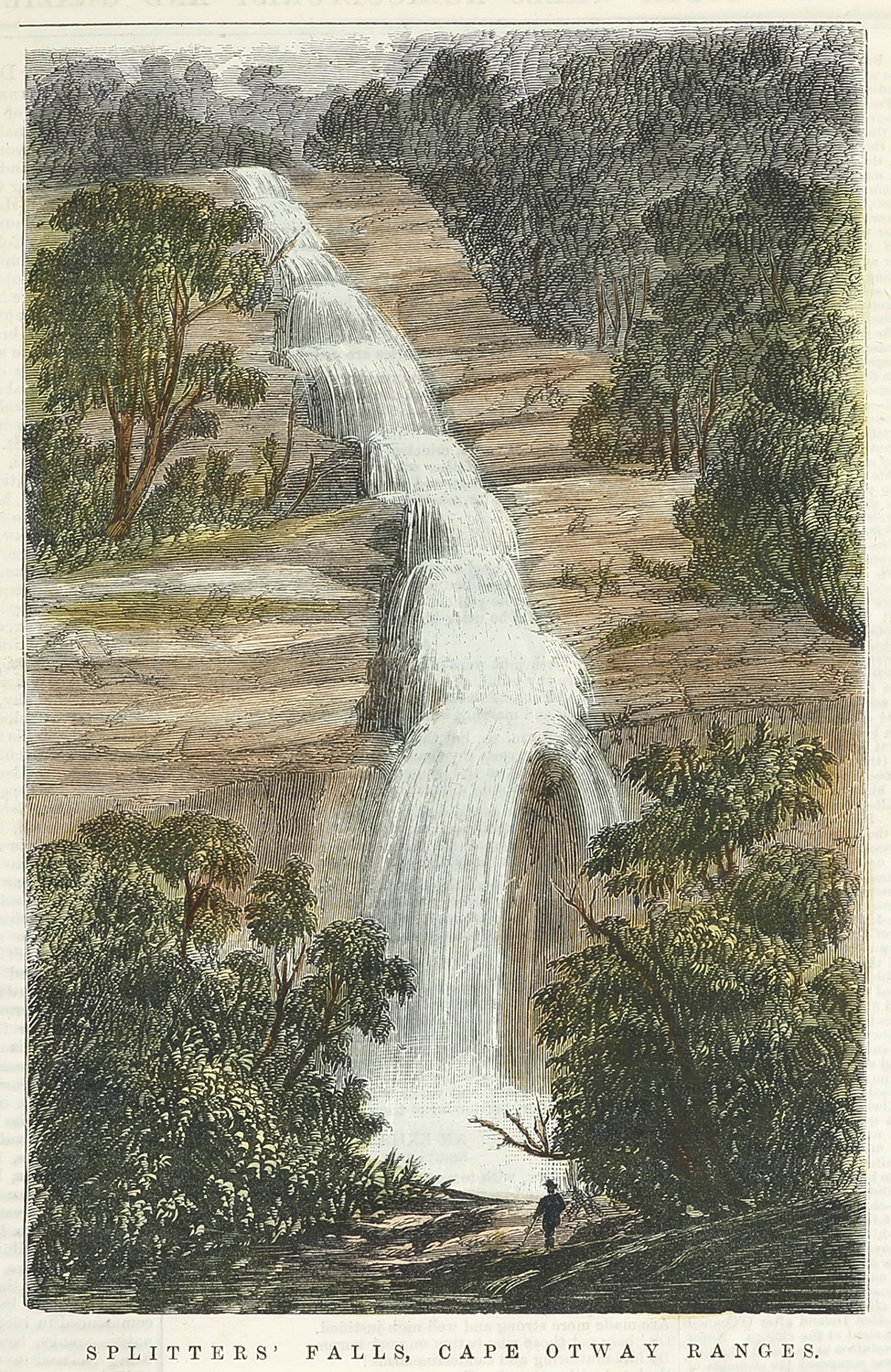Rare colonial engraving of Splitters’ Falls, within the Grampians National Park, Cape Otway Ranges.