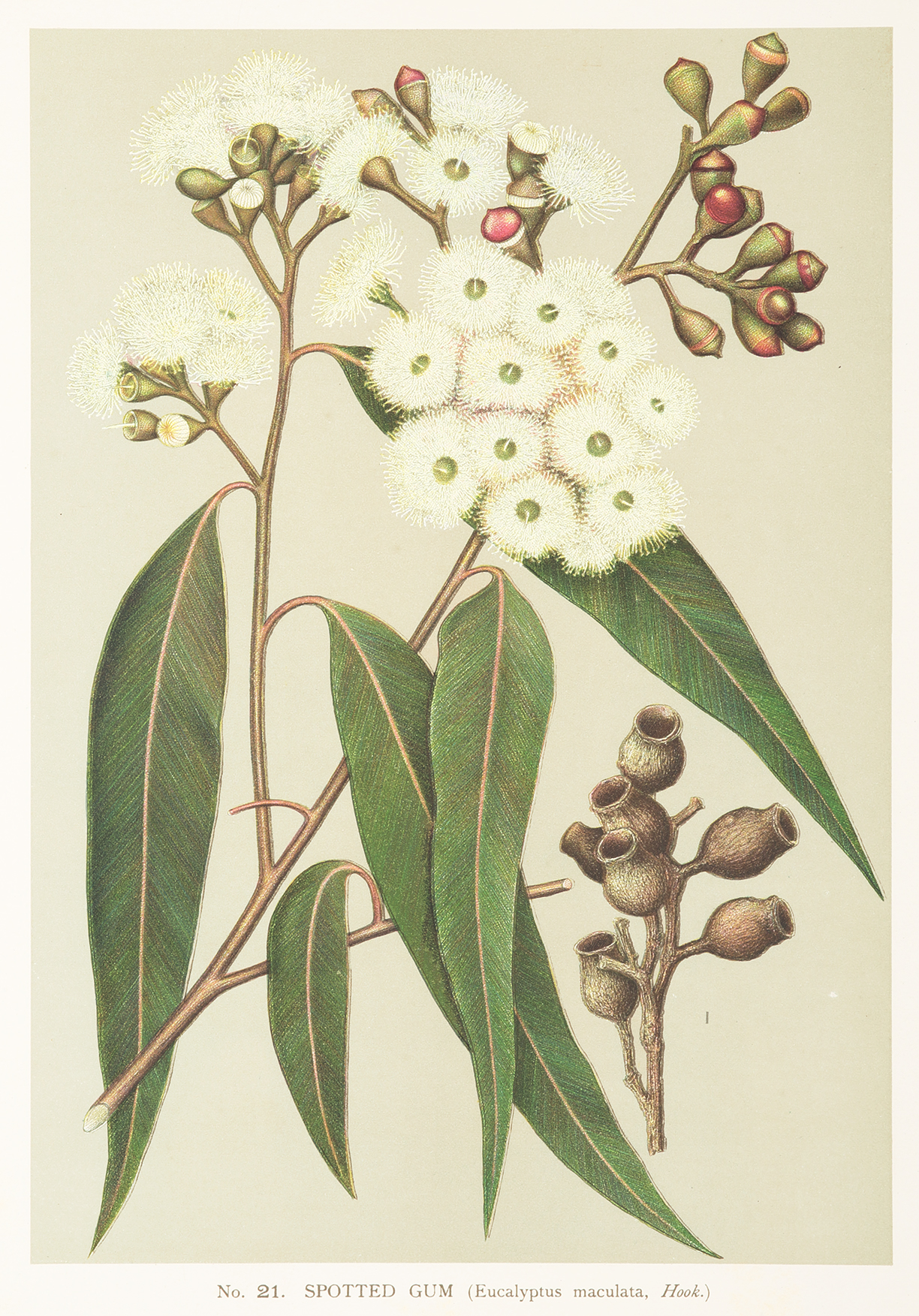 Scarce c.19th colour lithograph of the Spotted gum by Joseph Maiden.
