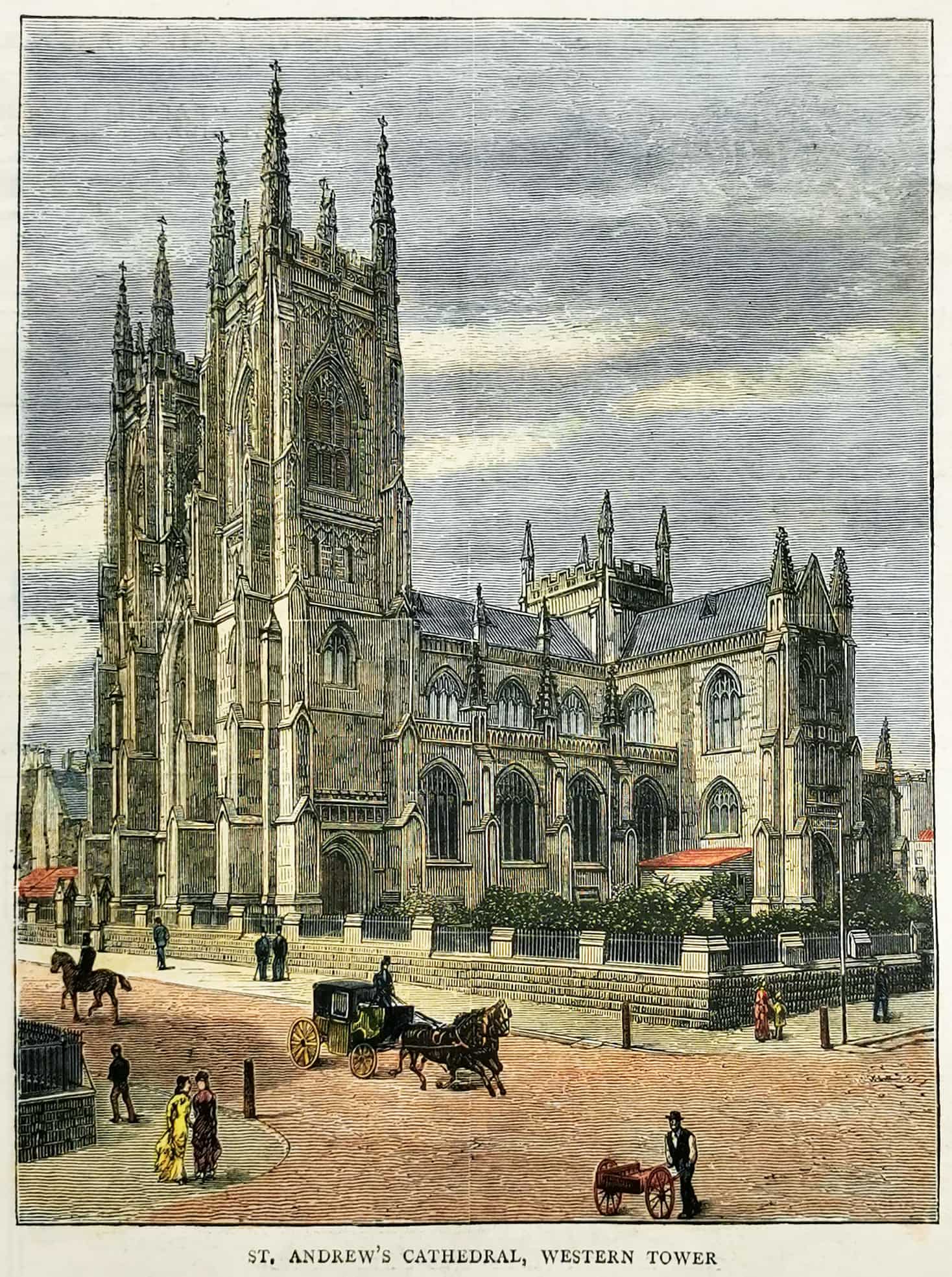 Scarce engraving of St. Andrew’s Cathedral, Sydney.