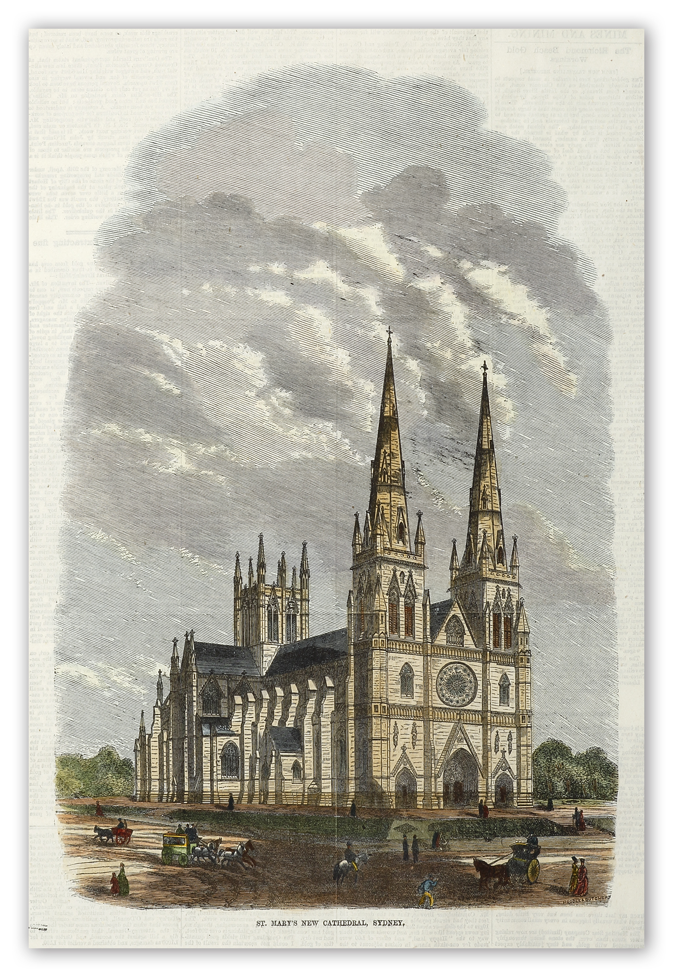Rare engraving of St. Mary’s made in 1871 showing the cathedral with the spires which were only finally put in place in 2000. From the original edition of the Town and Country Journal. References: Bennett, Frank & Christopher, The Australian Town … Read Full Description