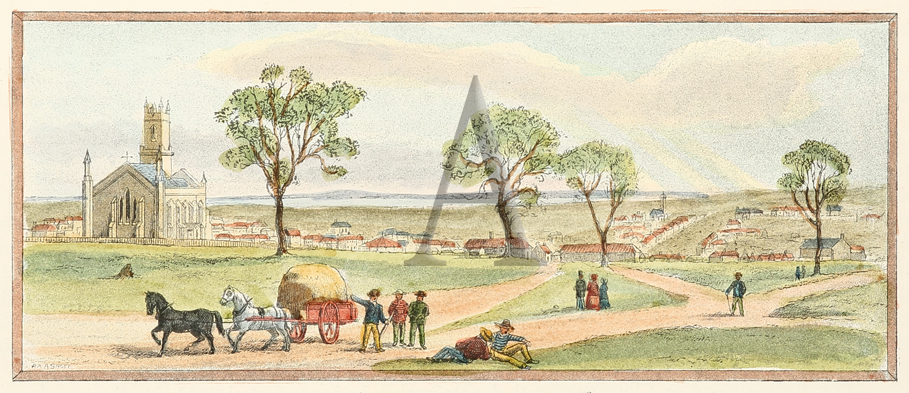 Small engraving showing the original church on the site. References: Ferguson, J. A. Bibliography of Australia Volumes 1-8, Canberra 1976 : 16439. Collections: National Library Australia: Bib ID 4084242 State Library Victoria: CCF 994.5 V66S State Library New South Wales: … Read Full Description
