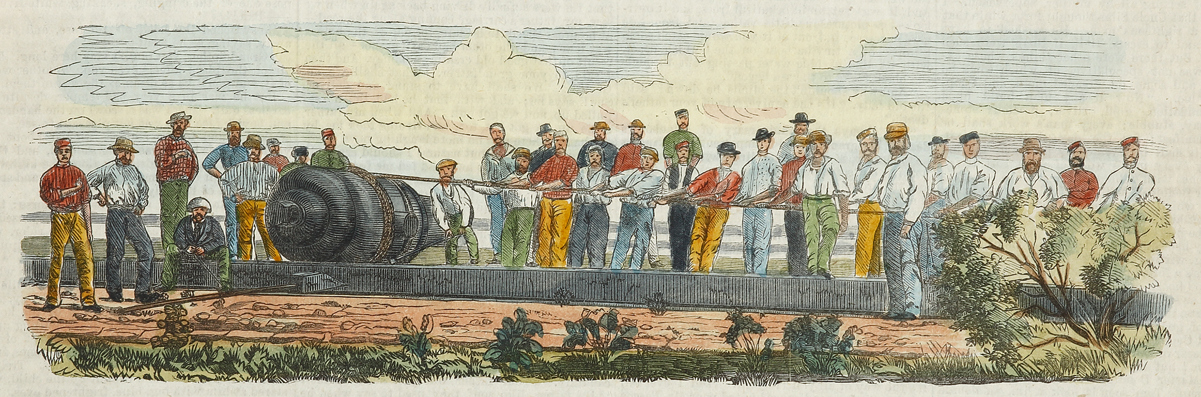 Very rare colonial engraving showing the method the men of the Regular Artillery used to move the guns intended for South Head after arriving from England.