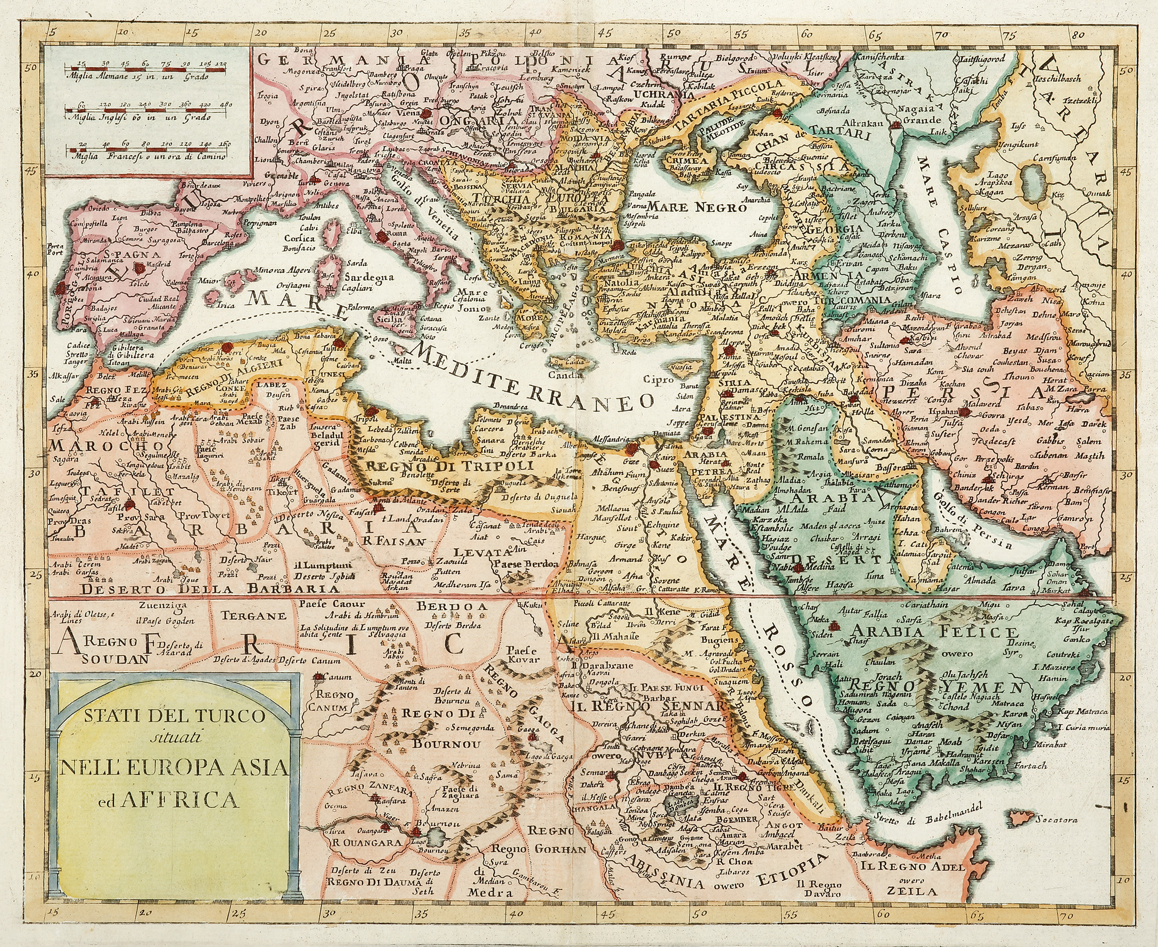 Exquisite and scarce c.18th map of the middle east by Giovambattista Albrizzi, publisher, patron, collector and one of the great figures of eighteenth-century Venetian intellectual and cultural life.
