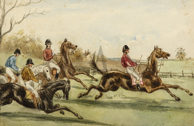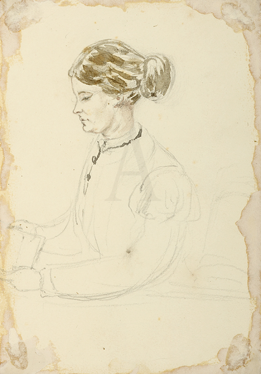 Nicely executed mid C19th original watercolour on the verso is an unfinished pencil and watercolour portrait of a woman.