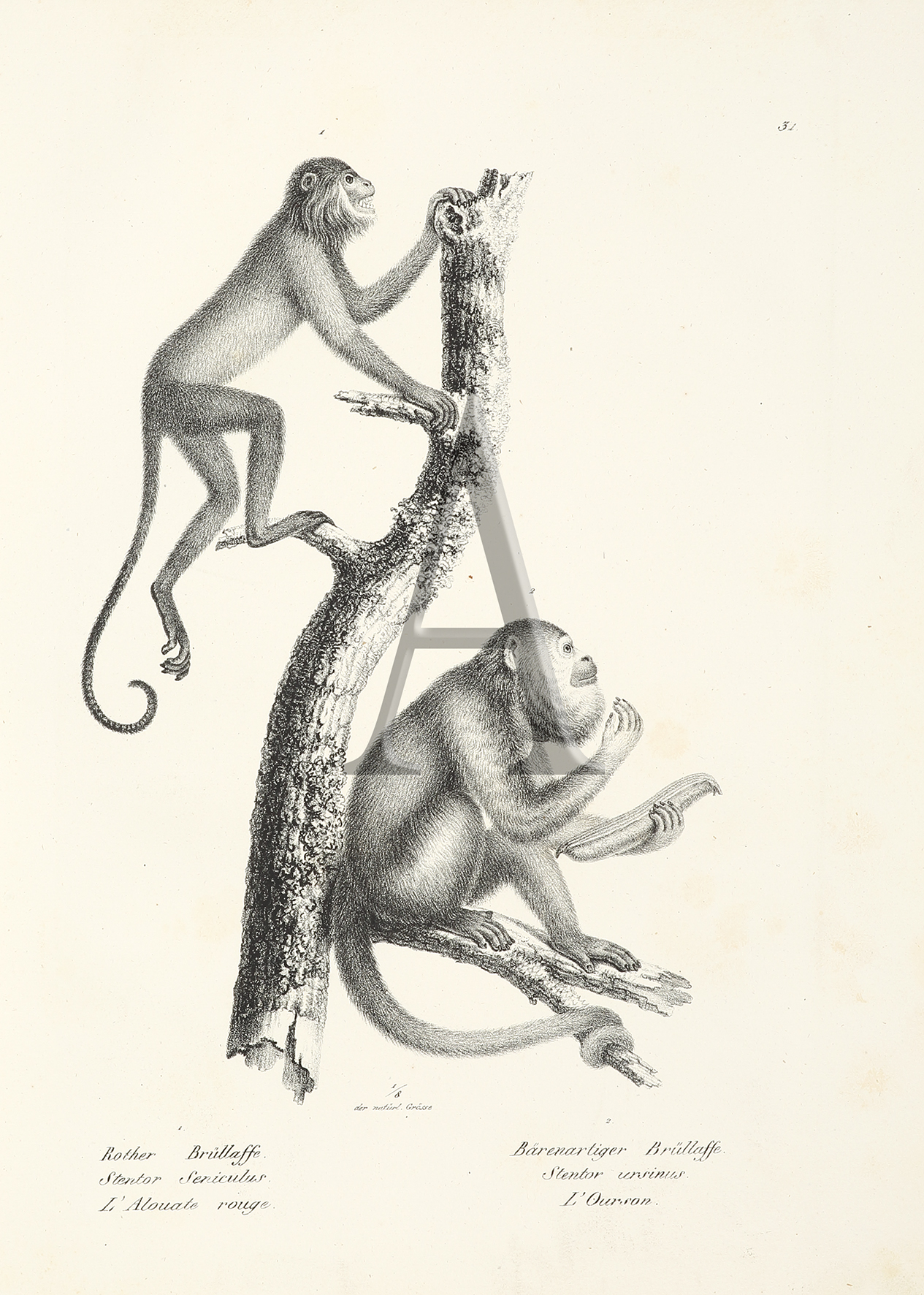 Stentor Seniculus. Stentor ursinus. (Monkey) - Antique Print from 1824
