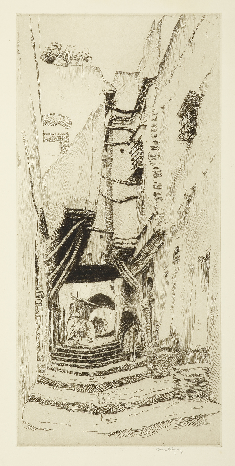 Fine etching by Kerr Eby of a doorway in Algiers.