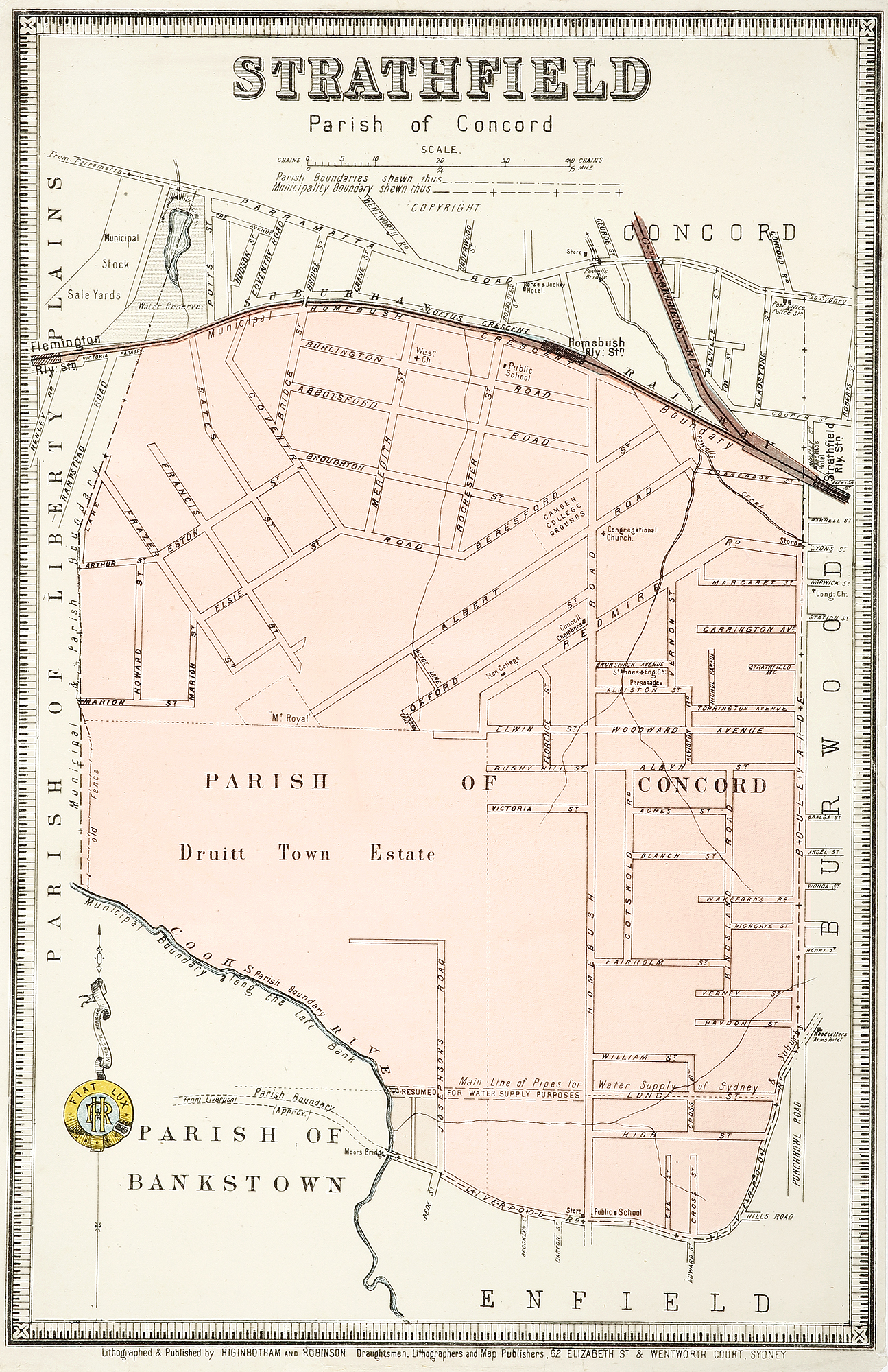 Rare suburban map of Strathfield, Sydney by Higginbotham & Robinson.