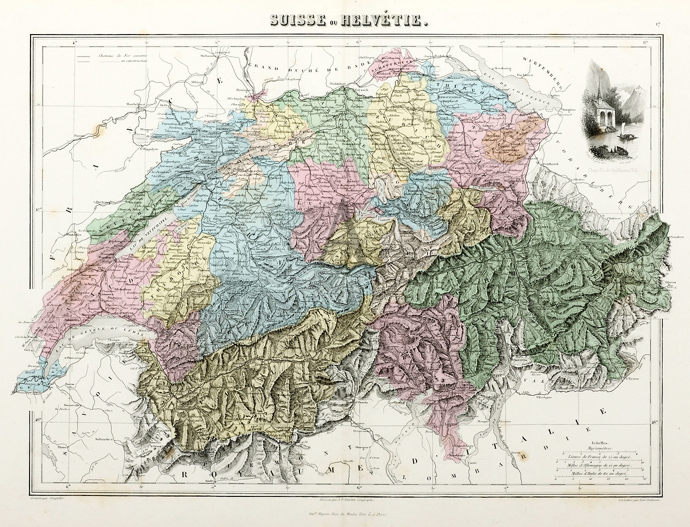 Map of Switzerland with an inset view at top right of William Tell’s chapel.
