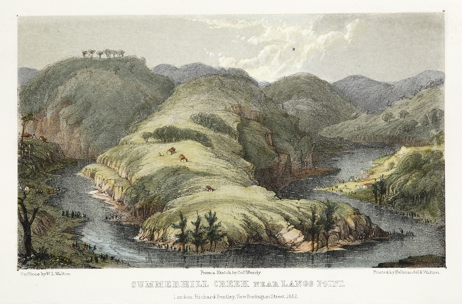 Mundy was a soldier and author. He entered the army as an ensign in 1821, was commissioned lieutenant in 1823, captain 1826, major 1839, lieutenant-colonel 1845, and colonel 1854. In 1825-26 he was decorated while serving in India as aide-de-camp to Lord Combermere at the siege and storming of Bhurtpore. He was later stationed in Canada and arrived in Sydney from London in the Agincourt in June 1846 as deputy adjutant general of the military forces in Australia. In Australia Mundy accompanied his cousin Governor Sir Charles Fitzroy on several outback tours in New South Wales, and visited Victoria, Van Diemen's Land and New Zealand. He left in August 1851 and during the Crimean war was appointed under-secretary in the War Office. On 4 April 1857 he was appointed lieutenant-governor of Jersey in the Channel Islands with the local rank of major-general. He died in London on 10 July 1860 survived by his wife Louisa Katrina Herbert, whom he had married in Sydney on 6 June 1848, and by their son.