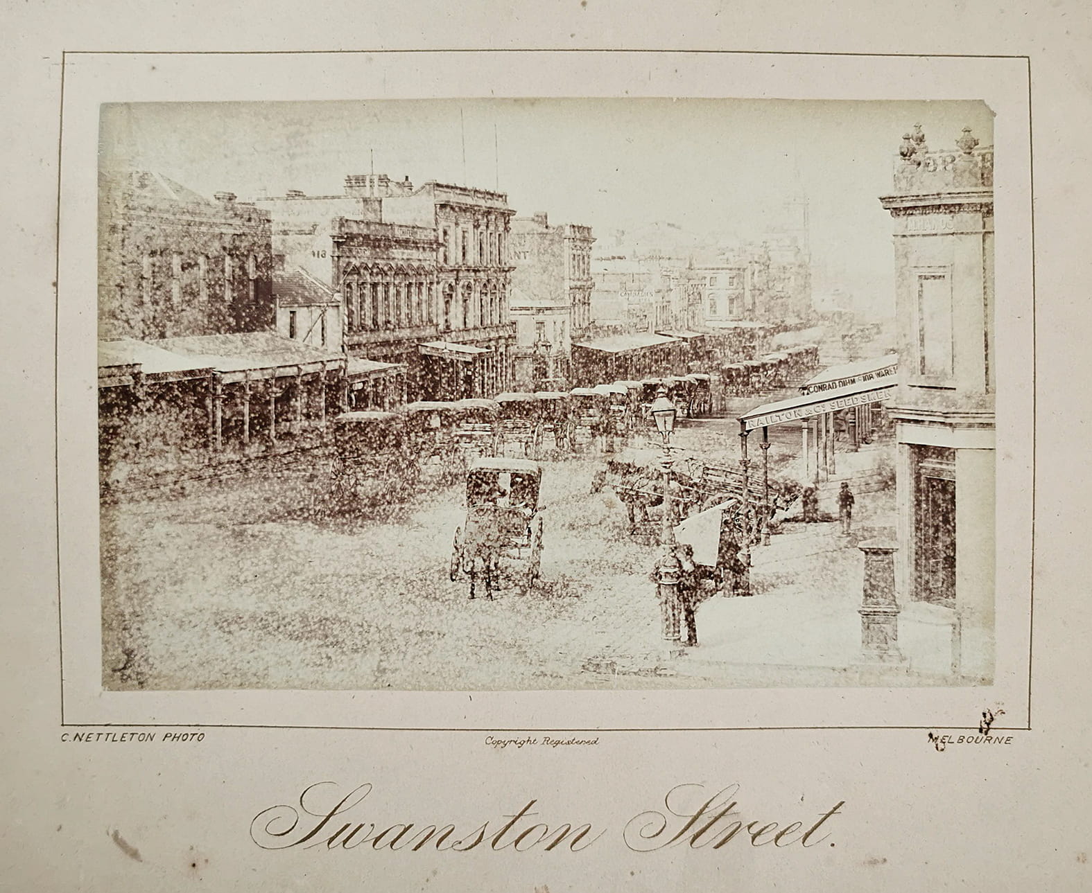 Rare vintage photograph by Charles Nettleton (1826-1902) of Swanston Street looking south from Lonsdale Street.